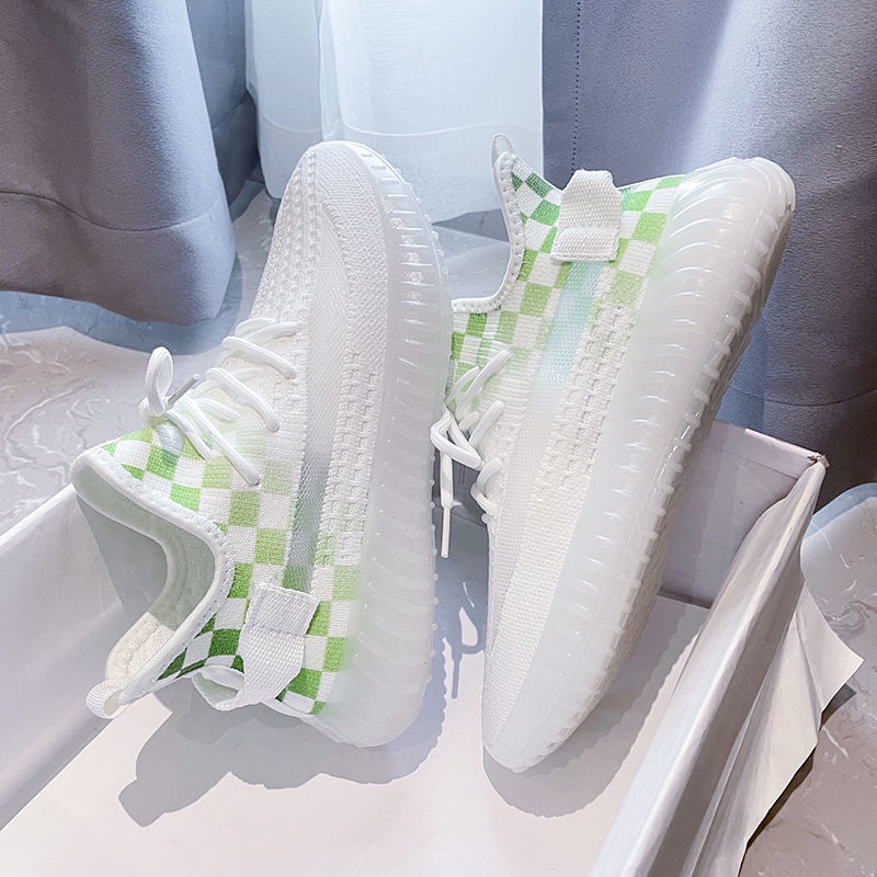 [Hoàn Trả gói vận chuyển] Giày dừa Gradient phụ nữ mùa hè mới co giãn giày thoáng khí Houndstooth bay dệt giày thể thao xu hướng ca