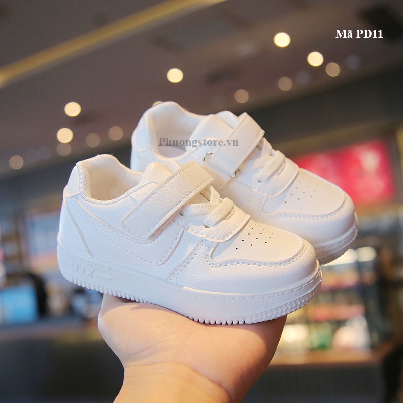 Giới thiệu Giày thể thao trắng cho bé gái, bé trai từ 1-12 tuổi nhẹ êm PD11
