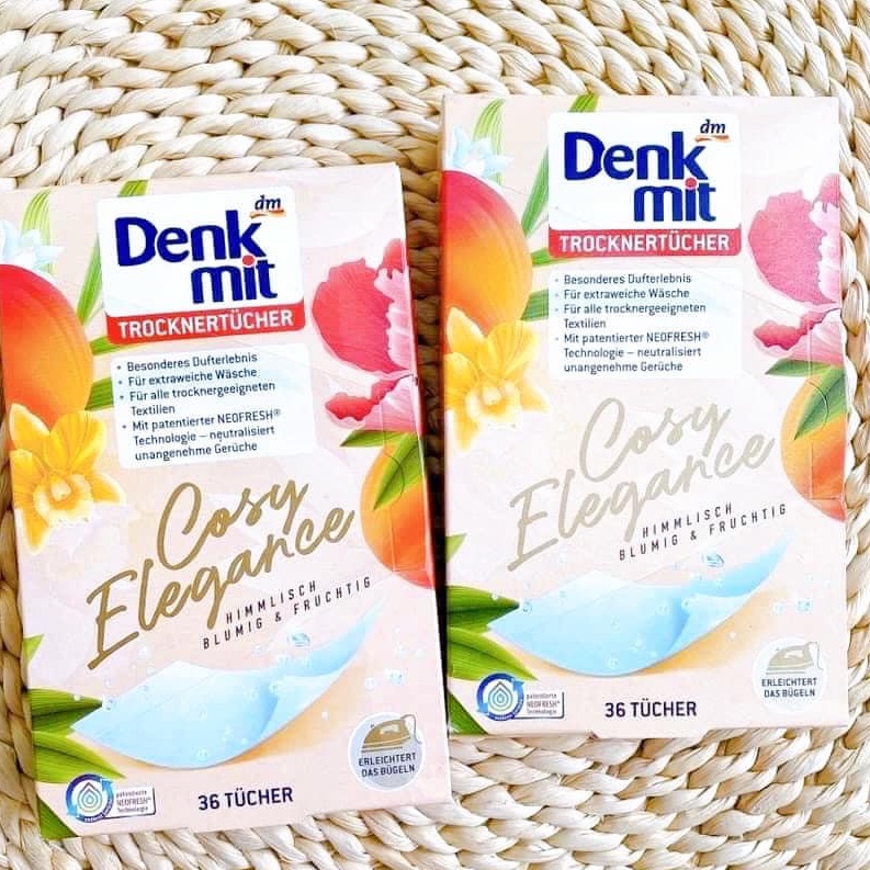 Giới thiệu Giấy thơm quần áo Denkmit Trocknertucher Cosy Elegance hương tưới mát hộp 36 miếng - Hàng nội địa Đức