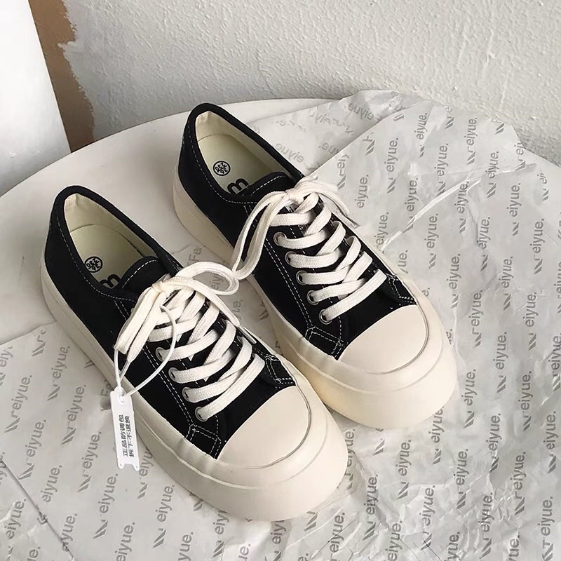 GIÀY NỮ ULZZANG HÀN QUỐC- HÀNG CÓ SẴN ----------------------------- 𝗕𝗔̉𝗡𝗚 𝗦𝗜𝗭𝗘 EU 36 = Chiều dài bàn chân 23cm EU 37 = Chiều dài chân 23.5cm EU 38 = Chiều dài bàn chân 24cm EU 39 = Chiều dài chân 24.5cm ------------------------------- 𝐌𝐎̂ 𝐓𝐀̉ 𝐒𝐀̉𝐍 𝐏𝐇𝐀̂̉𝐌 𝐂𝐎̛ 𝐁𝐀̉𝐍 -Chất liệu:Vải Canvas -Màu sắc: đen, trắng -Kích thước: 36,37,38,39 - Đế cao: 4cm -Chất liệu đế: Cao su lưu hóa -Hình dạng của mũi giày: Mũi tròn -Cách mang: buộc dây -Chất keo: ép nhiệt quanh giày (có thể sử dụng đi trời mưa, không lo bong, hở keo) ---------------------------------- 𝐒𝐔̛̉ 𝐃𝐔̣𝐍𝐆 Giày thể thao của shop có thể sử dụng đi học, đi chơi, đi du lịch dự tiệc. Giày có thể thông dụng sử dụng hàng ngày, chụp ảnh chụp hình pose dáng hay đi làm văn phòng, dạo phố.Giày vintage trắng đen đi chơi các dịp Tết, ngày lễ Noel, hallowin, giày bốt ulzzang đi các kiểu các kiểu vân vân mây mây... Đấy, shop mới liệt kê sơ sơ thui đó cả nhà, thực sự thì ẻm này lên đồ mix match đỉnh kout lắm lunnnn