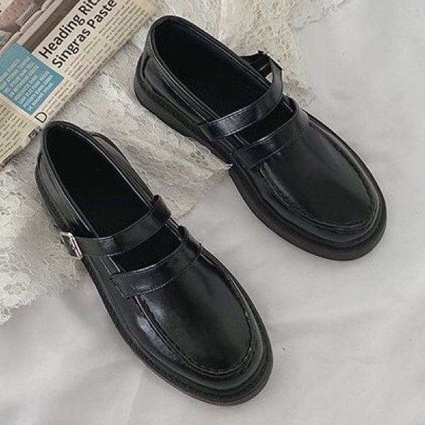 Giới thiệu Giày ulzzang oxford vintage da lỳ có dây vuông cho nữ phong cách hàn quốc trẻ năng động