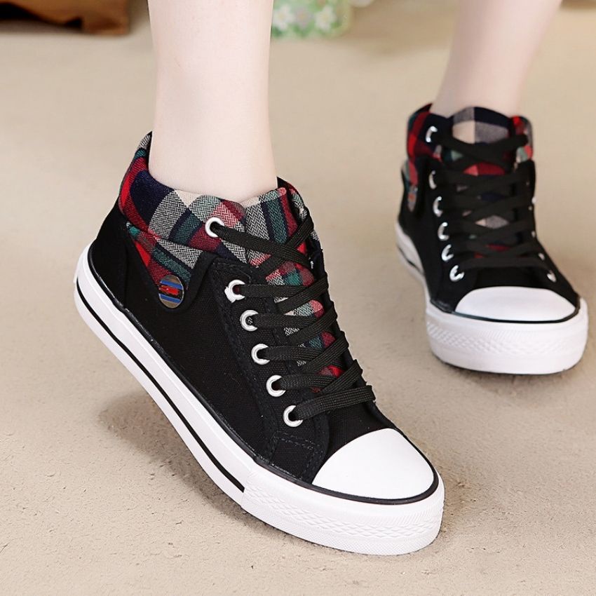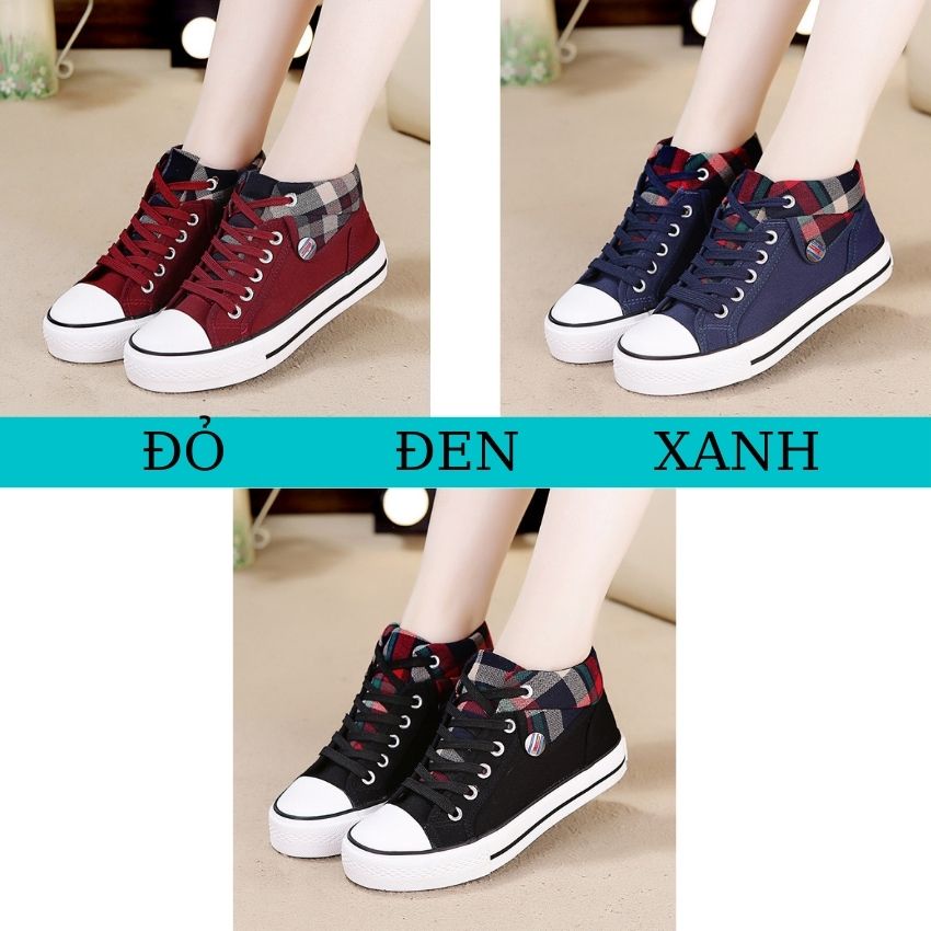 Giày Vải Nữ Cao Cổ Mẫu Mới Nhất ,Giày Học Sinh Nữ Kiểu Dáng Hàn Quốc GTTN26. _THÔNG SỐ SẢN PHẨM GIÀY VẢI NỮ KIỂU DÁNG HÀN QUỐC. +Màu sắc: đen+ xanh+ đỏ +Chất liệu: vải canvas +Size: 36.37.38.39 +Kiểu giày: giày thể thao nữ,giày vải nữ _Mẫu giày mới nhất gần đây đang làm mưa làm gió trên thị trường hiện nay đã về tới shop rồi đây ạ. vơi chất liệu vải canvas bền bỉ đã tạo nên bao tác phẩm đi cùng năm tháng. _Khác vơi các loại giày vải thông thường thì em giày vải nữ này lại có sự khác biệt bởi độ cao cửa cổ giày và điểm phối màu kẻ caro cẩn thận tỉ mit tạo nên đôi giày vải không có điểm nào để chê được. _giày thể thao nữ dễ đi ,dễ sử dụng thiết kế đế bằng vận động cả ngày không lo đau chân.sử dụng cho nhiều lứa tuổi khác nhau như giày học sinh,chạy tập,giày chạy bộ đều được nhé _Size giầy từ 36 đến 39 nên thoải mái cho chị em lựa size phù hợp nha _CÁCH BẢO QUẢN GIÀY VẢI NỮ HỌC SINH +Không để giày ở nơi ẩm ướt +Không giặt giày vơi dung dịch tẩy rửa mạnh +Không phơi giày dưới ánh nắng gay gắt