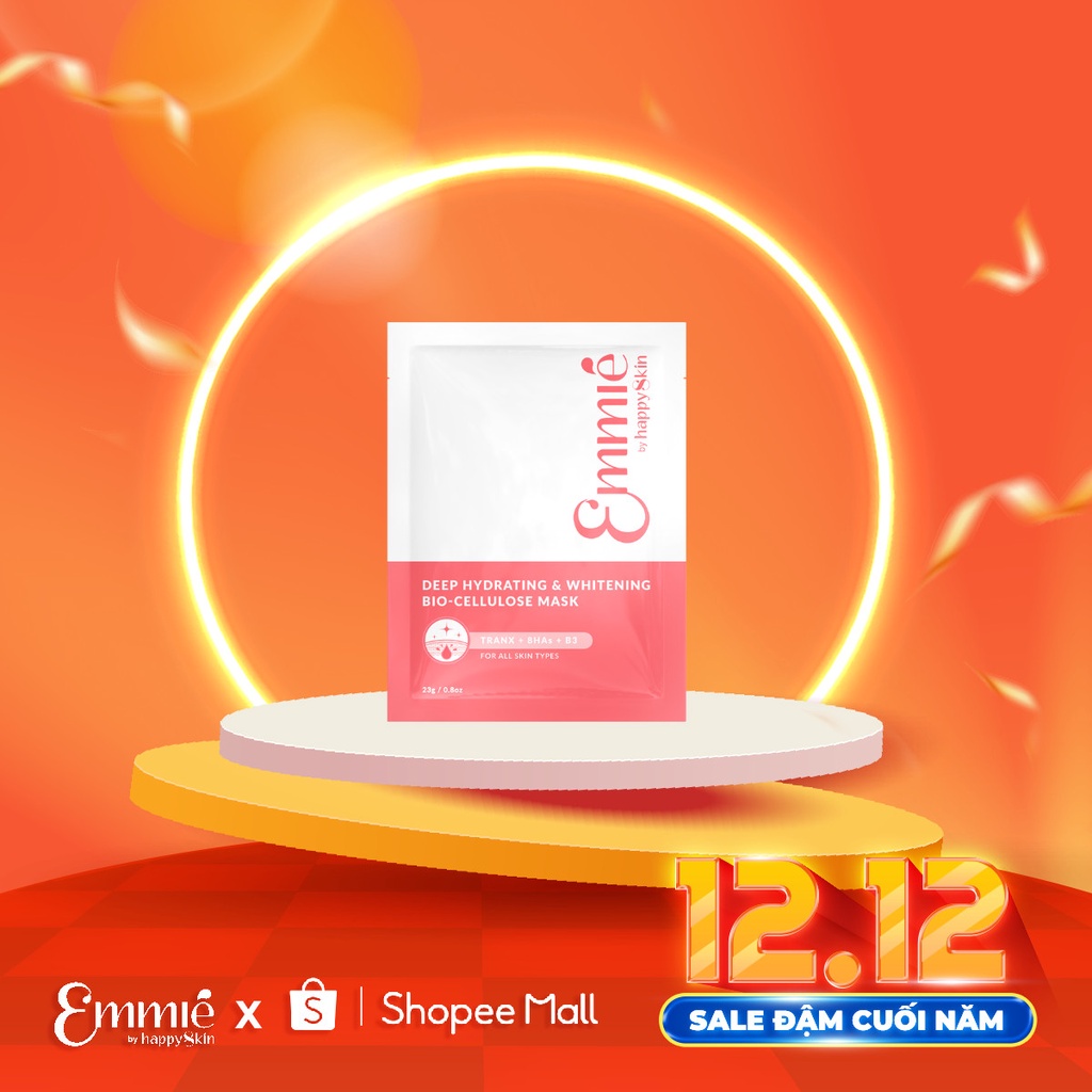 Giới thiệu [GIFT] 5 Mặt Nạ Dưỡng Trắng Super Hydrating & Whitening Bio Cellulose Mask Emmié by HappySkin