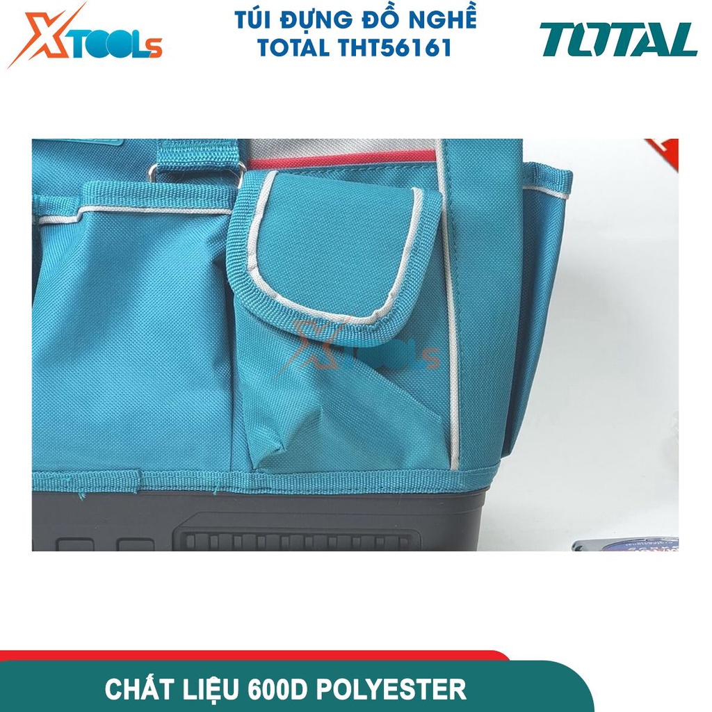 Giới thiệu Giỏ đựng công cụ 16 inch đế nhựa TOTAL THT56161, túi đựng đồ nghề chống nước, chất liệu 600D polyester-CHÍNH HÃNG-XTOOLS