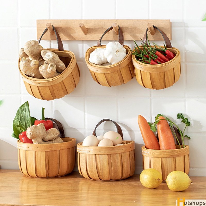 Giới thiệu Giỏ Đựng Trái Cây / Rau Củ Quả Bằng Gỗ Đan Tay Treo Tường Tiện Lợi Dành