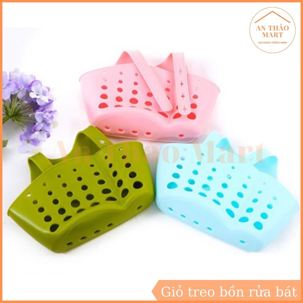 * Công dụng sản phẩm : – Giỏ treo đồ có kích thước nhỏ gọn nhưng hữu ích vô cùng. – Có móc treo tháo lắp tiện lợi, có thể treo trên tường, hoặc vòi nước… – Đựng được nước rửa chén, bọt biển rửa chén… giúp không gian bếp thêm gọn gàng, ngăn nắp. – Chất liệu nhựa bền đẹp, dễ dàng vệ sinh sạch sẽ. – Thiết kế xinh xắn, tiện dụng cùng chất liệu PVC mềm, không thấm nước luôn bền đẹp trong môi trường có độ ẩm cao. – Quai đeo có khuy cài chắc chắn giúp bạn treo giỏ ngay trên vòi nước thật tiện lợi. Bạn có thể treo ở vòi rửa bát, vòi sen tắm hay vòi chậu Lavabo đều được. – Bên dưới giỏ có nhiều lỗ thoát nước giữ cho bông tắm, xà bông, giẻ rửa bát hay các vật dụng khác luôn khô ráo, sạch sẽ.
