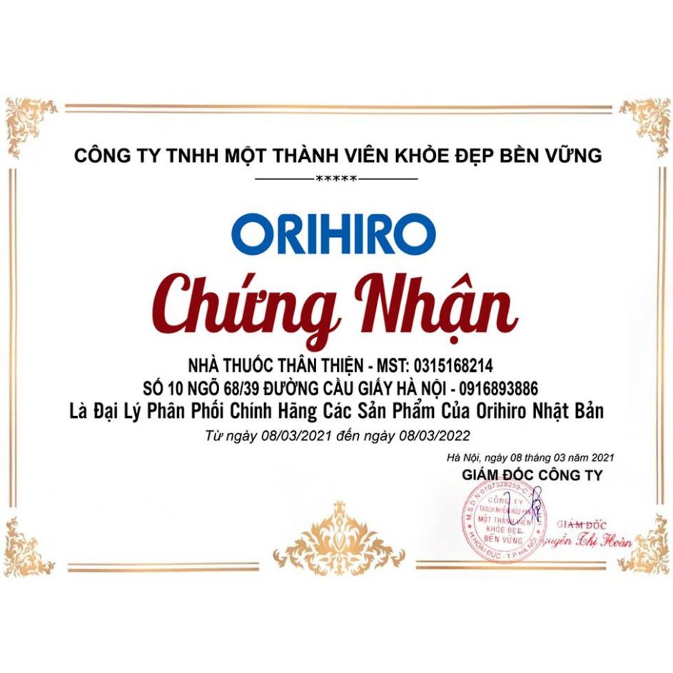 · Thông tin mô tả sản phẩm là hoàn toàn chính xác với công bố sản phẩm đã đăng ký với Bộ Y tế, 100% sản phẩm đều có giấy phép lưu hành từ Bộ y tế · Cam kết tất cả các sản phẩm cung cấp cho Quý khách hàng đều mới 100%, có nhãn hiệu và xuất xứ rõ ràng. _x000D_ Ưu điểm: Glucosamine Chondroitin Hyaruloric Acid Orihiro là một trong những sản phẩm bán chạy của hãng Orihiro với đặc tính Tăng cường độ bền, tính dẻo dai, hỗ trợ phục hồi và cải thiện dịch nhờn xương khớp. Chống loãng xương, giảm đau trong các trường hợp xương khớp, cứng khớp, viêm mãn tính, đau nhức