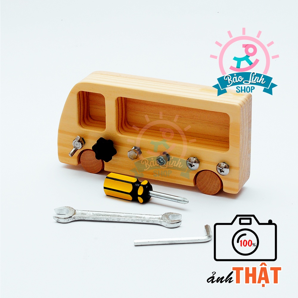 Đồ chơi gỗ bảng bận rộn Busy Bus (hình Ô Tô) cho bé 3-5 tuổi phát triển trí tuệ, phát triển kỹ năng cơ bản|