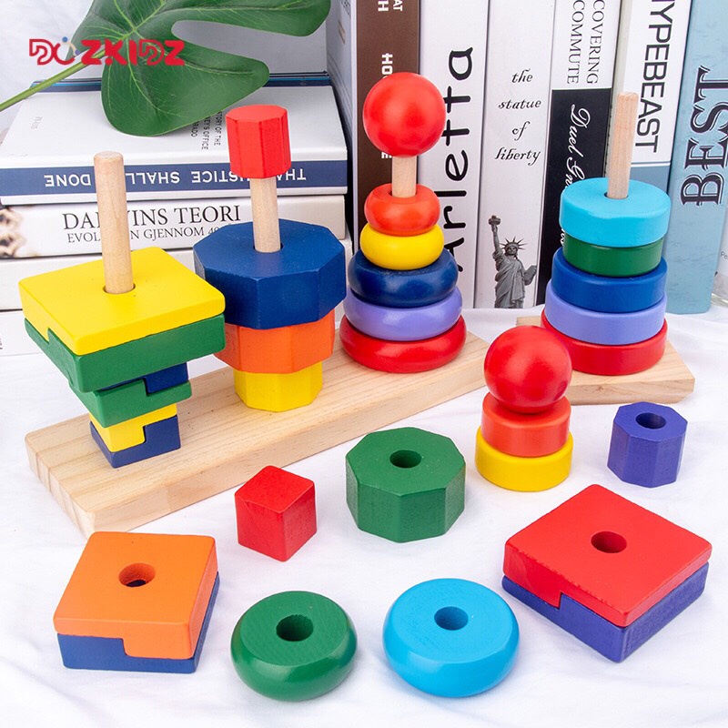 Giới thiệu Đồ chơi gỗ thông minh, xếp 3 tháp cầu vòng size lớn/nhỏ cho bé - DOZKIDZ