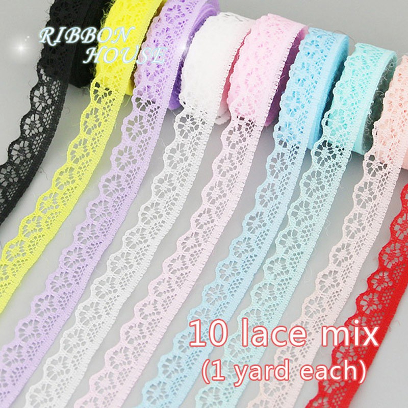 Tên sản phẩm: Vải ren Chiều dài: 10 Yard/Gói (10 cuộn ren khác nhau, mỗi cuộn 1 yard) Cách sử dụng: Ruy băng gói quà, làm nơ cài tóc, trang trí mũ mini, trang trí đầm cho bé gái, trang trí tiệc cưới, trang trí tiệc liên hoan, v.v.