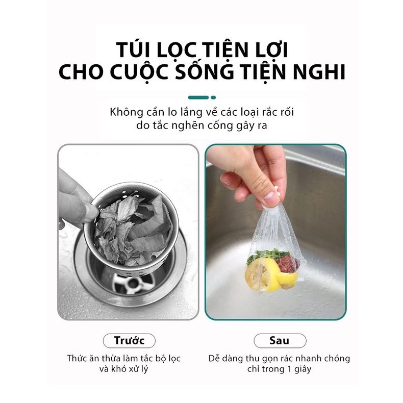 Giới thiệu Sét 100 Túi Lọc Rác Thức Ăn Thừa Thiết Kế Kiểu Lưới Siêu Dai Đầu Túi Có Chun Co Giãn Chống Tắc Nghẽn Ống