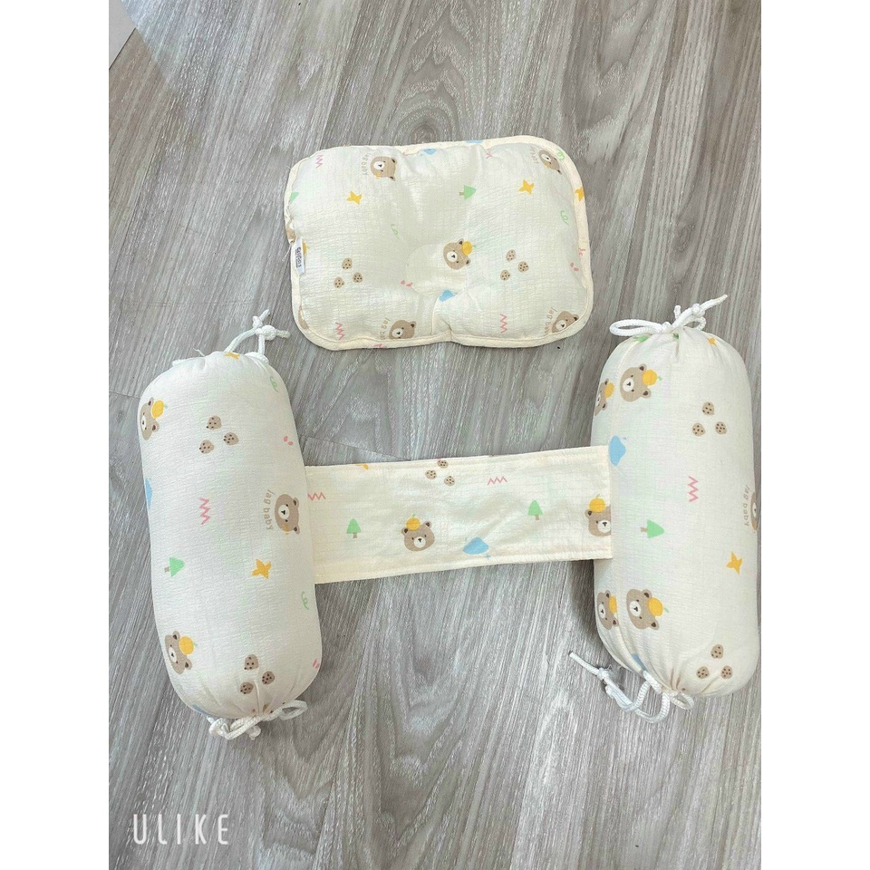 Giới thiệu Bộ gối chặn sơ sinh , Bộ chặn bông vải xô chống giật mình, chống lõm đầu cho bé xuất Nhật