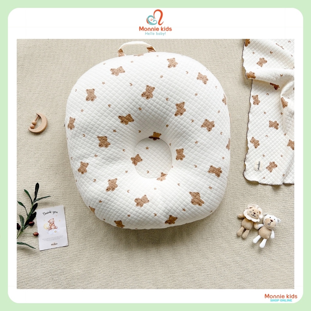 Giới thiệu Gối chống trào ngược lụa cotton gấu cho bé Mochee 68x68cm, gối chống trào ngược cho trẻ sơ sinh