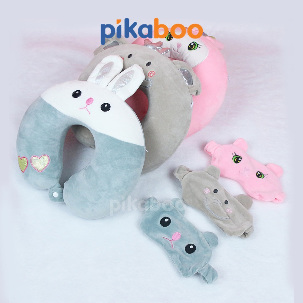 Giới thiệu (Summer Sale 50%) Gối kê cổ kèm miếng che mắt cao cấp Pikaboo, vải cotton nhung lông mịn mềm co dãn, bông 3D tinh khiết