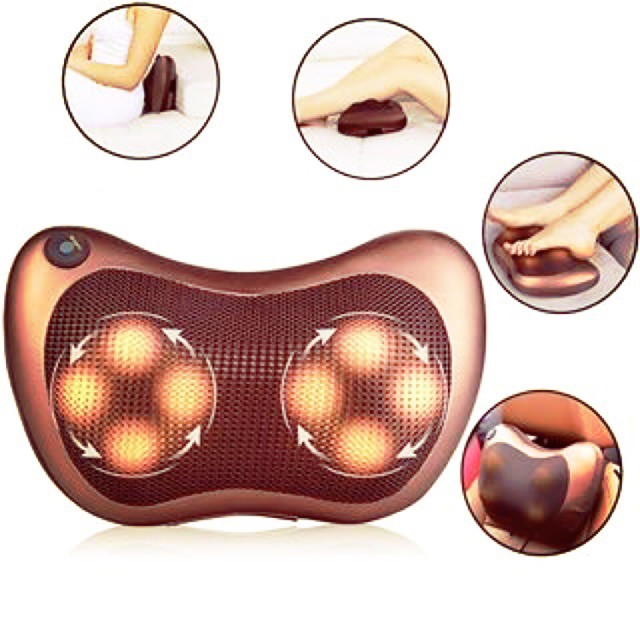 Điểm nổi bật:* Điện nguồn: 220V /50Hz.* Công suất: 22W.* Chất liệu: Được làm từ nhựa tổng hợp và cao su rất an toàn.* Bảo hành: trong vòng 3 tháng và đổi hàng trong 1 tuần kể từ ngày mua nếu phát sinh lỗi từ phía nhà sản xuất.* Được thiết kế gọn nhẹ, dễ sử dụng. Trang bị 4 quả cầu lắp trong, Massage xoa bóp vào các cơ và huyệt.* Chức năng sưởi nóng bằng tia hồng ngoại.* Cải thiện tuần hoàn máu, tăng cường sự trao đổi chất của các tế bào.* Giảm đau, giảm tình trạng căng cơ, xua tan những cơn mệt mỏi.* Có bảng điều khiển giúp dễ dàng điều chỉnh chế độ Massage. Có thể dùng để Massage cho nhiều vị trí trên cơ thể như: cổ, vai, lưng, bụng, đùi, bắp chân, bàn chân, bàn tay…Chi tiết sản phẩm:Gối Massage đa năng, gọn nhẹ dễ sử dụng. Trang bị với 4 quả cầu lắp trong, Massage xoa bóp vào các cơ và huyệt. Có bảng điều khiển giúp dễ dàng điều chỉnh chế độ Massage.Chức năng của gối Massage đa năng- Gọn nhẹ, dễ sử dụng.- Trang bị với 4 quả cầu lắp trong, Massage xoa bóp vào các cơ và huyệt.- Có bảng điều khiển giúp dễ dàng điều chỉnh chế độ Massage.- Chức năng sưởi nóng bằng tia hồng ngoại.- Cải thiện tuần hoàn máu, tăng cường sự trao đổi chất của các tế bào.- Giảm đau, giảm tình trạng căng cơ, xua tan những cơn mệt mỏi.- Có thể dùng để Massage cho nhiều vị trí trên cơ thể như: cổ, vai, lưng, bụng, đùi, bắp chân, bàn chân, bàn tay…• Massage toàn thân.• Massge chân.• Massge lòng bàn chân.• Xoa bóp lăn.• Massge mắt.• Massage rung.• Massage lưng.• Massage đầu.Có điều khiển với 3 nút: nút II là nút nhào và làm nóng; nút 0 để tạm dừng; nút I để xoa bóp.Máy có thể dùng Massage gáy, lưng, có thể dùng đặt trước ghế, dùng được cho cả ghế otô.Một số lưu ý khi dùng máy Massage:- Không Massage trong thời gian quá lâu.- Có thể tăng thời gian sử dụng sau khi đã quen với máy.- Dùng ít hơn 30 phút mỗi lần.- Sau khi dùng xong nhớ tắt nguồn, rút phích điện.- Sử dụng bông mềm và chất tẩy rửa trung tính để lau chùi máy.- Không đặt máy ở nơi nóng, ẩm.- Không đặt gần bếp, nguồn nhiệt.- Tốt nhất nên uống 500cc nước ấm trước và sau khi dùng máy.- Không dùng cho phụ nữ mang thai, trẻ em.