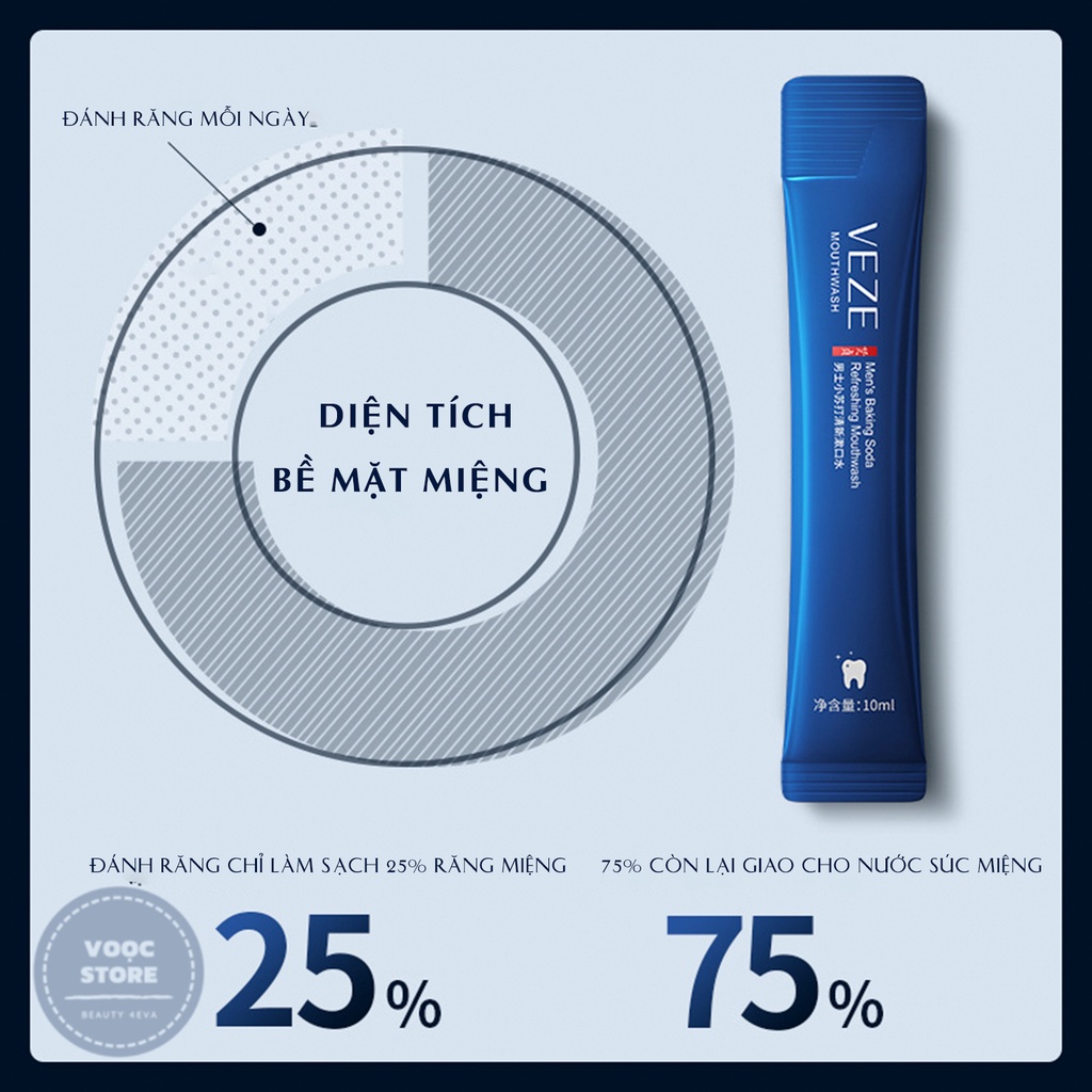 ✔️CÁCH SỬ DỤNG Bước 1: Bao bì riêng lẻ, xé mở gói dùng 1 lần. Bước 2: Xé mở gói rồi đổ vào miệng và xúc đều khoan miệng trong 60 giây rồi nhả ra. Bảo quản nơi khô ráo, thoáng mát và tránh ánh nắng trực tiếp