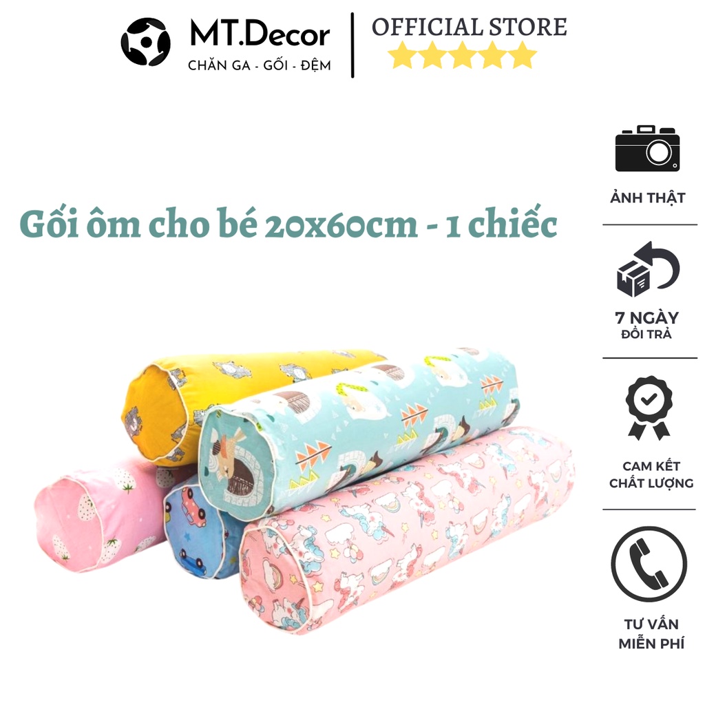 - Kích thước gối 20x60cm - Vải Cotton 100% thoáng mát, an toàn cho da bé - Vỏ và ruột riêng rất tiện giặt giũ. - Gối ôm phù hợp cho bé 1 tuổi đến 10 tuổi