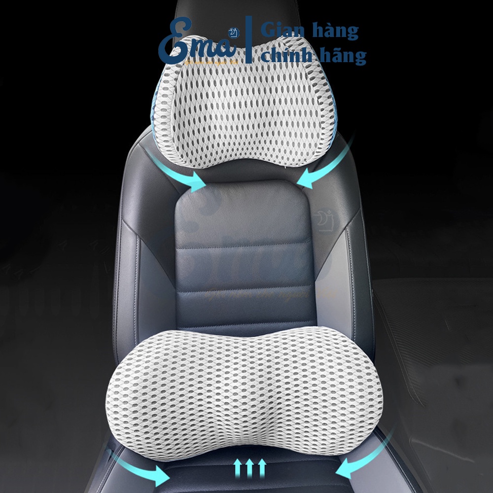 Ô Tô & Xe Máy & Xe Đạp > Phụ kiện bên trong ô tô > Gối, nệm tựa lưng, đầu > Bộ gối tựa đầu & lưng ô tô cao su non EMA - Vỏ 4D siêu thoáng - Thiết kế ôm trọn bảo vệ cột sống