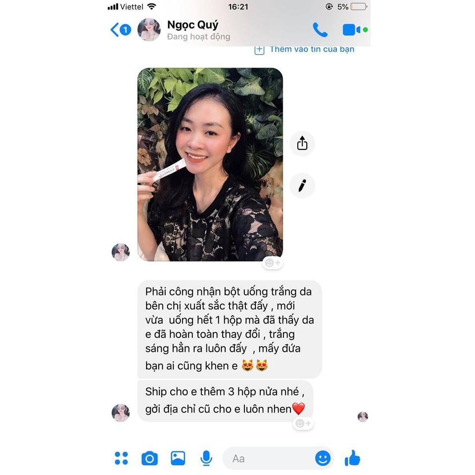 tCÔNG DỤNG: - Dưỡng trắng da từ sâu bên trong( NÁM DA , TÀN NHANG, MỤN) - Bổ sung Collagen giảm nếp nhăn, Hỗ trợ giảm lão hóa vượt trội, trẻ hóa làn da - Tăng cường độ ẩm, độ đàn hồi giúp da trắng mịn và ẩm mượt - Thải độc, cân bằng nội tiết - Hiệu quả cao bảo vệ da khỏi tác động của tia UV do ánh nắng - Hỗ trợ Làm đều màu da toàn thân cho bạn một làn da trắng sáng - Cân bằng nội tiết tố, đào thải sắc tố độc hại melanin