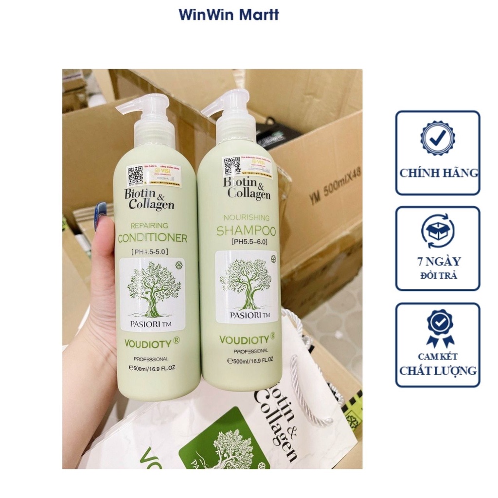 Giới thiệu Gội Xả Phục Hồi Mọc Tóc Và Kềm Dầu Ngăn Rụng Tóc, Ngừa Gàu Biotin Collagen Voudioty 500ml.
