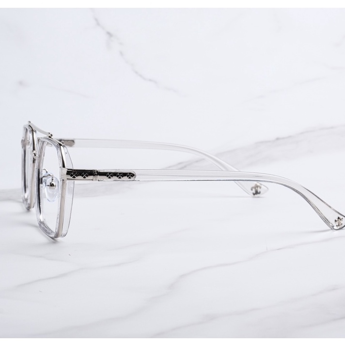 - Tròng kính là tròng không độ các bạn có thể mang giả cận, chống bụi và lắp tròng cận. - Đệm mũi được cải tiến liền với gọng phù hợp với từng sóng mũi của mỗi người. - Chốt kính hợp kim chắc chắn giúp giữ form kính tốt. - Kính được thiết kế theo form vuông phi công thanh mảnh, kich thước phù hợp cho các bạn có khuôn mặt nhỏ, thon gọn. Sản phẩm tặng kèm hộp và khăn lau.