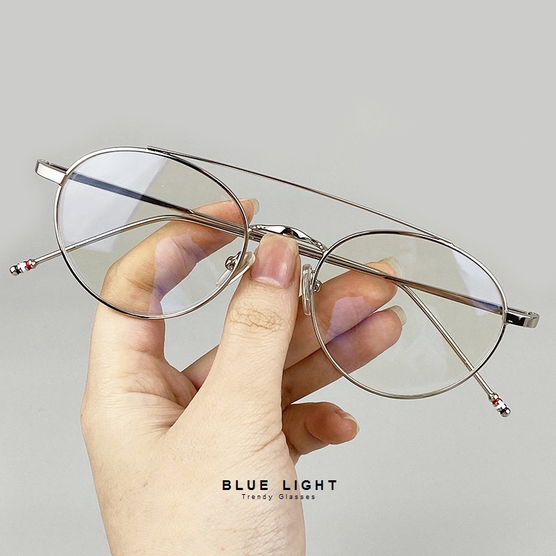 Giới thiệu Gọng Kính Cận, Kính Giả Cận Nam Nữ, Mắt Tròn Nhỏ, Gọng Kim Khung Ngang Màu Bạc, Đen Hàn Quốc - BLUE LIGHT