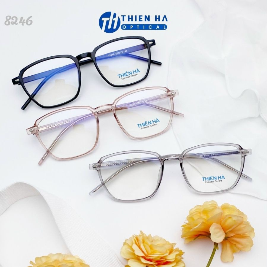 Giới thiệu Gọng kính nam nữ vuông Thiên Hà Optical chất liệu nhựa cao cấp gọng cốt thép chắc chắn trẻ trung hợp cả cận nặng TH8246