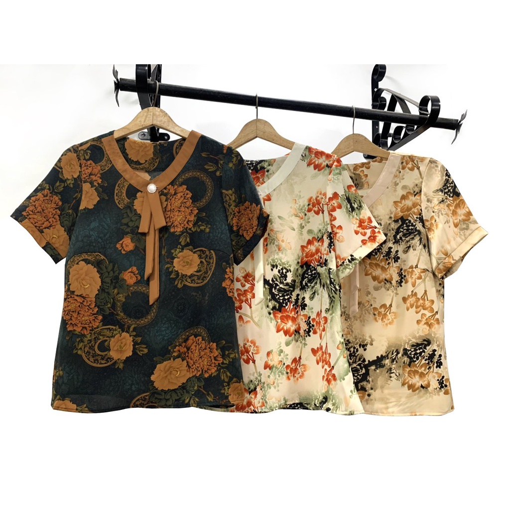 GOTI - Áo Sơ Mi Trung Niên Nữ U50-60 Bigsize Dành Tặng Mẹ Dạng Áo Kiểu Nơ Cổ Đính Phụ Kiện 3A36 3A17 3A02 Áo Suông Trung niên được thiết kế dáng áo suông lụa cổ nơ đính phụ kiện in hoa, tay ngắn, đính phụ kiện rời, chất liệu không co giãn nhưng vẫn tạo được cảm giác thoải mái. Áo quý bà rộng dài rất dễ mặc và tôn dáng, những chị có phần eo hơi tròn 1 chút thì khỏi lo vì áo nay thiết kế che bụng rất tinh tế Chất liệu vải vừa phải không mỏng cũng không dày nên phù hợp với thời tiết của việt nam Áo sơ mi trung niên nữ được thiết kế áo chui đầu mặc vào rất dễ Áo Kiểu Trung Niên được may sắc xảo, sắc nén rất đẹp Chất liệu: Lụa CAO CẤP Màu sắc: Rêu Hoa, Kem Hoa Nâu, Kem Hoa Đỏ Mục đích: Công sở, Đi chơi, Dạo phố, Dự tiệc. Sản phẩm gồm 1 áo có M 46-52kg, L 52 – 60kg, XL 60-67kg, XXL 67-74kg, 3XL 74-80kg THÔNG SỐ ÁO LỤA IN HOA CỔ TIM ĐÍNH NƠ KÈM PHỤ KIỆN - 3A36 SIZE M: vòng 1: 94 cm - Chiều dài tay 21 cm - Chiều dài áo 60 cm SIZE L: vòng 1 : 100 cm - Chiều dài tay 22 cm - Chiều dài áo 61 cm SIZE XL: vòng 1: 106 cm - Chiều dài tay 23 cm - Chiều dài áo 62 cm SIZE XXL: vòng 1: 110 cm - Chiều dài tay 24 cm - Chiều dài áo 63 cm SIZE 3XL: vòng 1: 116 cm - Chiều dài tay 25 cm - Chiều dài áo 64 cm THÔNG SỐ ÁO - ÁO CỔ TRÒN PHỐI TAY REN VOAN KÈM PHỤ KIỆN 3A17 SIZE L: vòng 1: 98 cm - Chiều dài tay 36 cm - Chiều dài áo 57 cm SIZE XL: vòng 1: 104 cm - Chiều dài tay 37 cm - Chiều dài áo 58 cm SIZE XXL: vòng 1: 110 cm - Chiều dài tay 38 cm - Chiều dài áo 59 cm SIZE 3XL: vòng 1: 116 cm - Chiều dài tay 39 cm - Chiều dài áo 60 cm ÁO KIỂU TRUNG NIÊN ĐÍNH NÚT PHỐI EO CÁCH ĐIỆU 3A02 SIZE L: vòng 1: 96 cm - Chiều dài tay 27 cm - Chiều dài áo 55cm SIZE XL: vòng 1: 102cm - Chiều dài tay 28cm - Chiều dài áo 56cm SIZE XXL: vòng 1:108cm - Chiều dài tay 29cm - Chiều dài áo 57cm SIZE 3XL: vòng 1 : 114cm - Chiều dài tay 30 cm - Chiều dài áo 58 cm