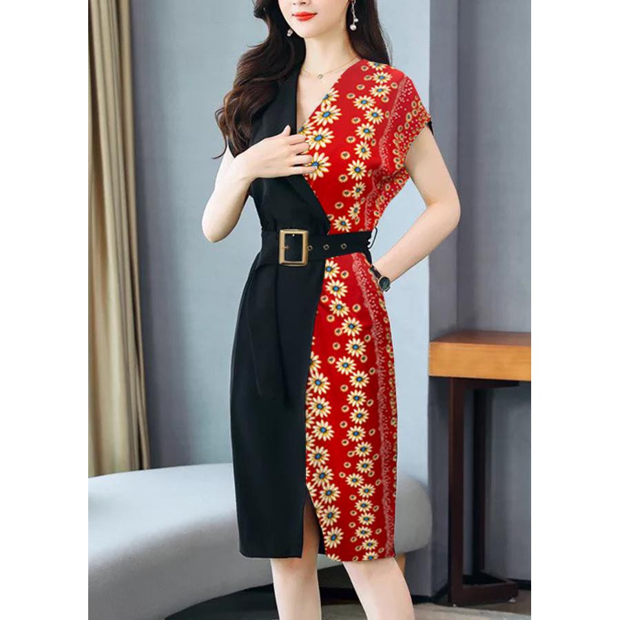 Giới thiệu [GOTI - Có Hình Thật - Siêu Chất] Đầm Ôm Công Sở Nữ Dạng Cánh Dơi In Hoạ Tiết Hoa Cúc Đỏ Kèm Thắt Lưng 3275
