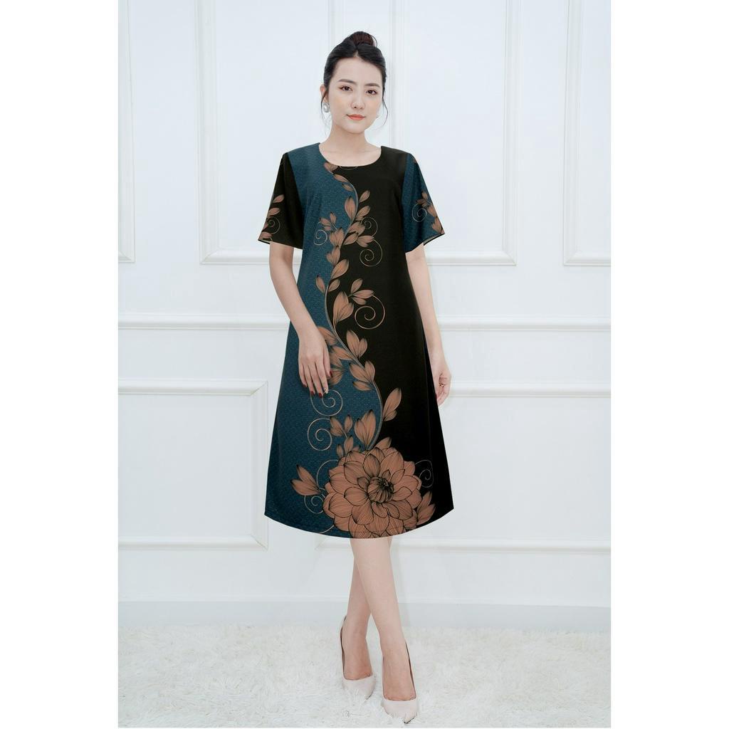 GOTI – Đầm Dáng Suông Trung Niên Dự Tiệc Cao Cấp Vải Lụa In Hoa Sen Mềm Mịn Cho Mẹ U40 U50 3374 3347 3345