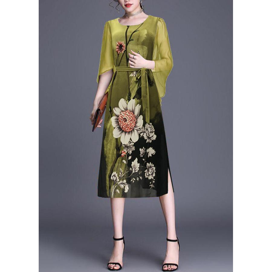 Giới thiệu GOTI - Hình Thật - Đầm Trung Niên Bigsize Dự Tiệc Kiểu Suông Nữ Tay Cánh Tiên In Cành Hoa Trắng Cột Eo Tặng Mẹ 3265