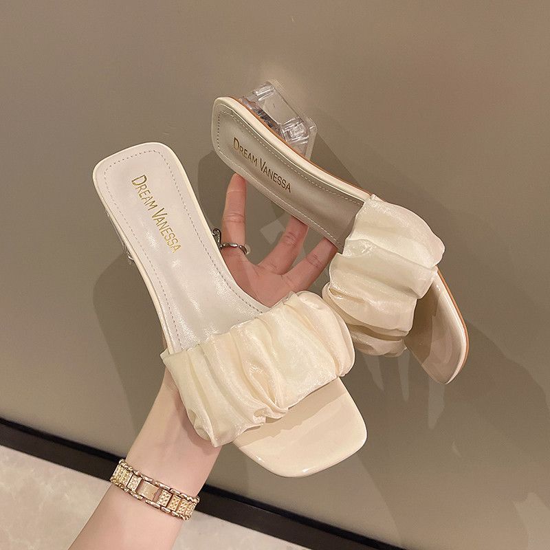 Giới thiệu GUỐC DÉP NỮ CAO GÓT ĐẾ VUÔNG 3 PHÂN QUAI BÈO NHÚN VẢI VOAN GÓT TRONG SUỐT HOT 2022 VINA STORE - mã SD31