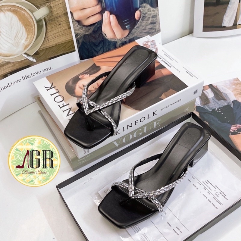 Guốc kẹp 3 dây đính đá gót vuông 3p ( hàng đẹp )