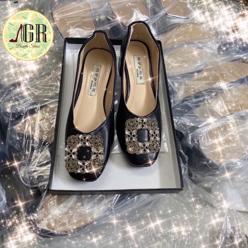 Giới thiệu Guốc mũi vuông da mềm khoá đá gót vuông 3 cm