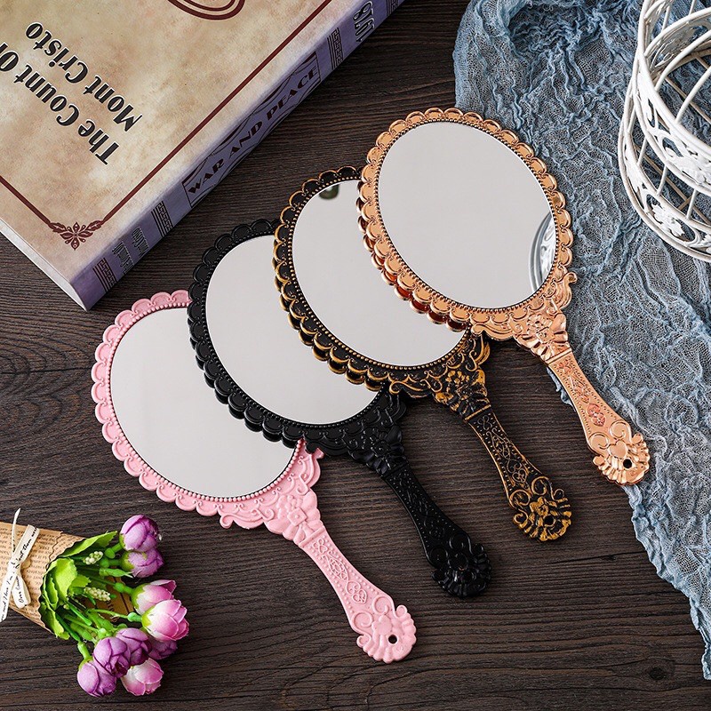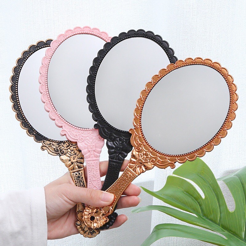 Tên sản phẩm: Gương cầm tay công chúa DCPX-NTA Chất liệu : Nhựa APS + gương kính Màu sắc: Đen , Hồng, Đồng, Bạc