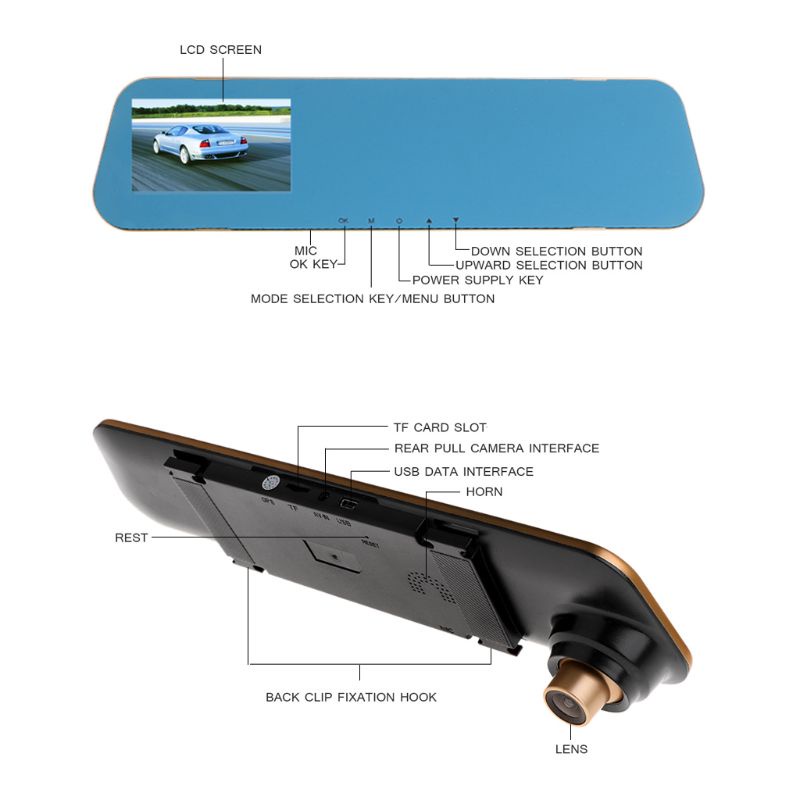 Máy ghi hình xe V40 Hai ống kính Gương chiếu hậu Máy ảnh Video Dashcamera Full for Thương hiệu mới và chất lượng cao