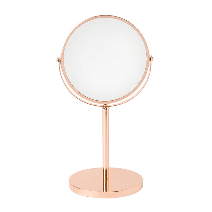 Gương đứng để bàn màu vàng hồng đơn giản. Mặt sau của gương có độ phóng đại gấp 3 lần. Bạn có thể dễ dàng điều chỉnh góc độ.