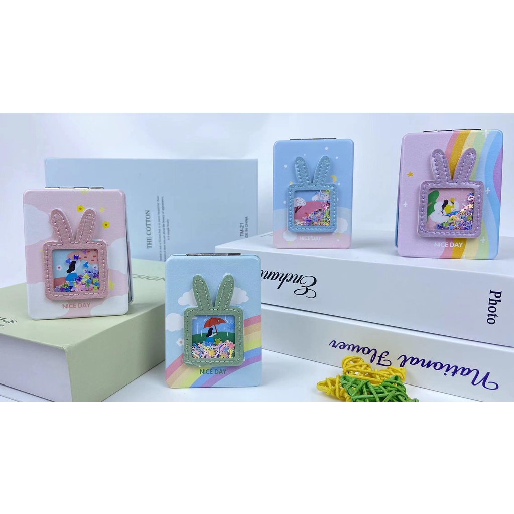Gương Mini Trang Điểm 2 Mặt (Thường & Phóng Đại) Da Hình Nổi Kim Tuyến Họa Tiết Đáng Yêu (giao mẫu ngẫu nhiên)