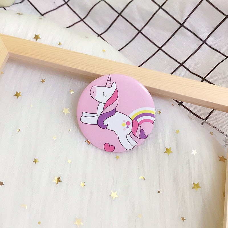 Giới thiệu Gương trang điểm mini bỏ túi hình tròn họa tiết kỳ lân dễ thương