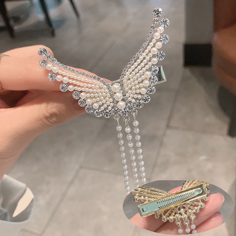 Giới thiệu Haimeikang Nữ phong cách Hàn Quốc Kẹp Tóc Bướm Ngọc Trai Tua sang trọng