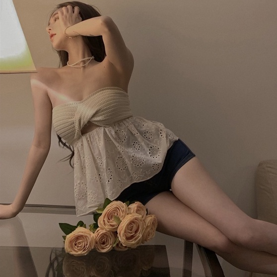 Giới thiệu [Hana And Alice] Áo Dệt Kim Phối Ren Hở Vai Quyến Rũ Thời Trang