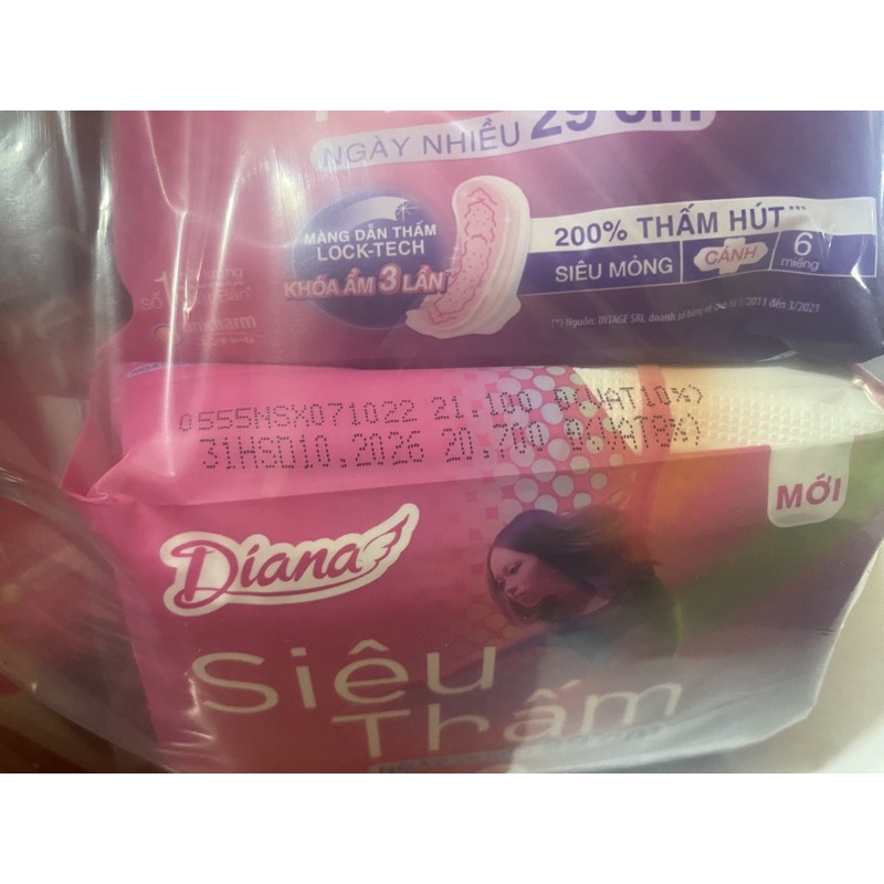 Giới thiệu [Chính Hãng 29cm] Lốc 6 gói Băng Vệ Sinh Diana siêu thấm siêu mỏng cánh NGÀY NHIỀU 29cm 6 miếng/gói
