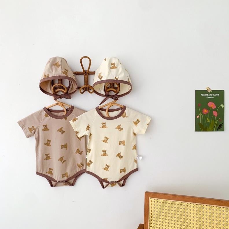 Giới thiệu (Hàng cao cấp) Body chip gấu màu kem và nâu sữa cho bé trai và bé gái kèm mũ hàng xuất Hàn cao cấp