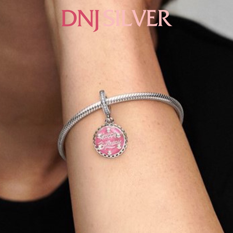 Charm bạc 925 cao cấp, hàng chuẩn bạc Mẫu Charm Pink Birthday Cake thích hợp để mix vòng Pan - Mã sản phẩm DN070