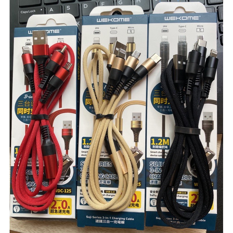 Sản phẩm [ Chính Hãng] CÁP 3 ĐẦU REMAX WK WDC- 125 3in1 phù hợp mọi dòng máy, iphone ss oppo, type c, sạc 3 điện thoại, bọc dù đang có giá bán là 64,000đ. Hiện tại, đang có hàng sẵn tại shop của chúng tôi trên sàn TMĐT Shopee. Quý khách có thể ĐẾN NƠI BÁN để vào shop chúng tôi đặt mua online, trả góp, ship hỏa tốc, thanh toán thẻ visa/master, thông tin xuất hóa đơn đỏ (VAT) hay cần có thêm nhiều thông tin về sản phẩm.
