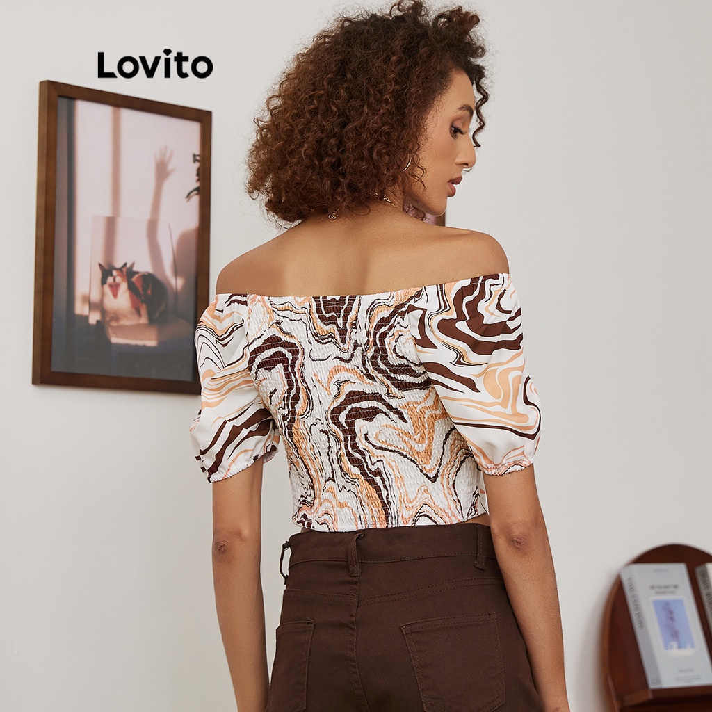 Giới thiệu (Hàng có sẵn) Áo Lovito dáng ngắn nhuộm màu loang L19D336 (Màu nâu)