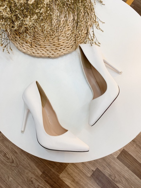 🌿 Giày gót nhọn 12 cm, chất liệu đẹp dễ đi lại, mix đồ đơn giản, không đau chân, phù hợp mặc váy, quần Tây... Size: 35-39 Màu: trắng, đen, kem