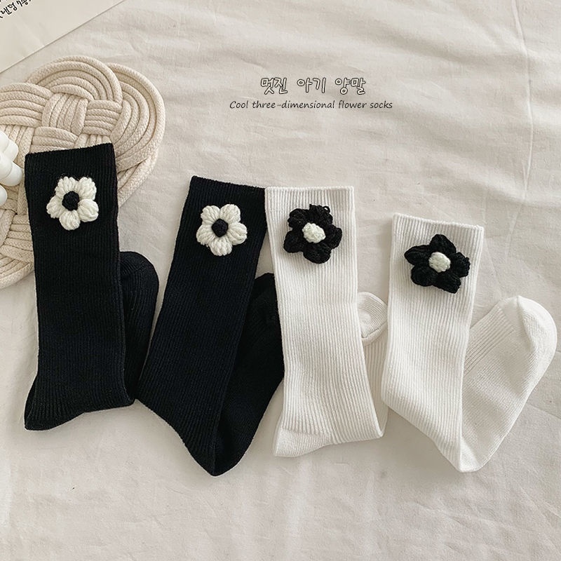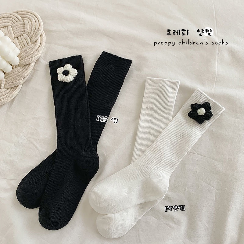 Thời Trang Trẻ Em > Phụ kiện trẻ em > Tất > [Hàng Có Sẵn] Vớ Bắp Chân Ba Chiều Màu Trơn Họa Tiết Hoa Nhỏ Phong Cách Preppy Thời Trang Xuân Thu Dành Cho Bé Gái