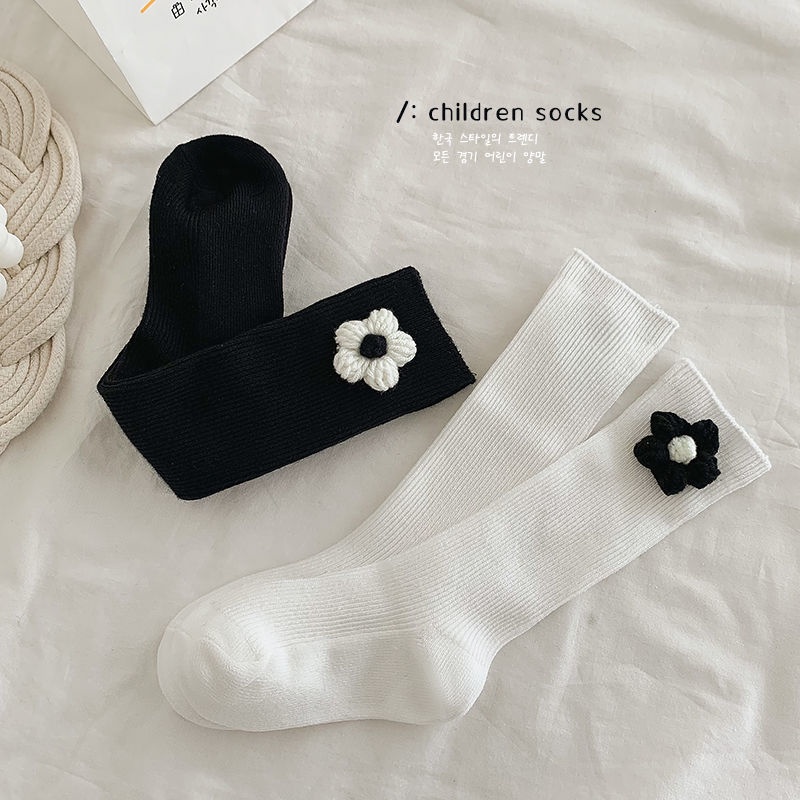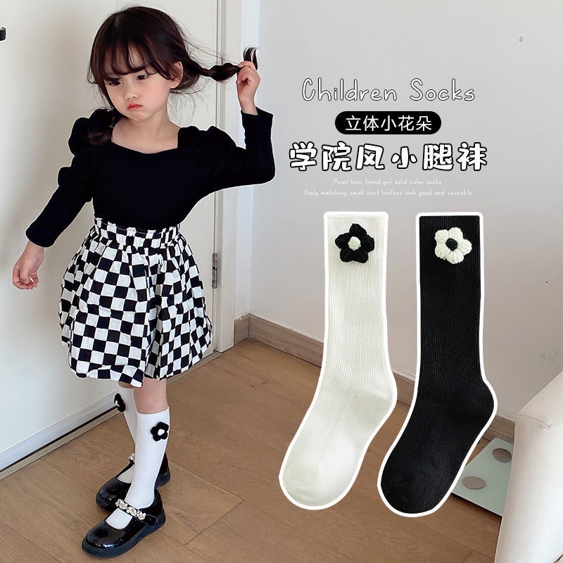 Giới thiệu [Hàng Có Sẵn] Vớ Bắp Chân Ba Chiều Màu Trơn Họa Tiết Hoa Nhỏ Phong Cách Preppy Thời Trang Xuân Thu Dành Cho Bé Gái