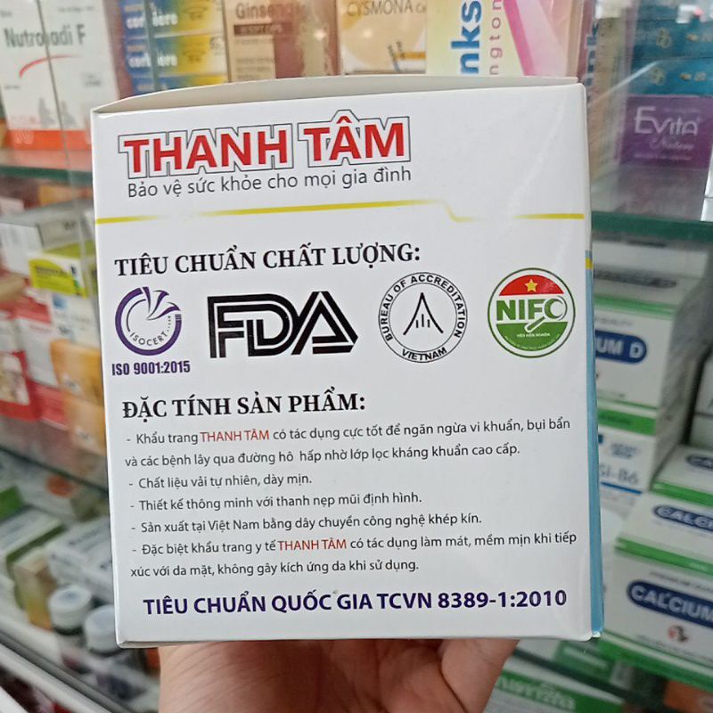 CẤU TẠO KHẨU TRANG THÀNH TÂM: Khẩu trang THÀNH TÂM sử dụng công nghệ vải không dệt (Non - Woven) SMS trong ngành khẩu trang hiện nay. Đặc biệt khẩu trang Thành Tâm không thấm nước, không mùi và cho độ mềm mịn khi đeo.Khẩu trang THÀNH TÂM được tích hợp với 03 chức năng vào 1 chiếc khẩu trang như: chống thấm nước, lọc bụi, lọc khuẩn. Nhằm bảo vệ sức khỏe, các bệnh qua đường hô hấp cho người sử dụng một cách tuyệt đối. Các khẩu trang của Thành Tâm cam kết nguyên liệu được nhập 100% trong nước, đảm bảo tính ổn định, chất lượng sản phẩm cho quý khách hàng và người sử dụng. Không thấm nước, không gây dị ứng da. Dây quai đàn hồi tốt đem lại cảm giác thoải mái, đặc biệt không đau tai. Cam kết sản phẩm an toàn tuyệt đối cho người sử dụng.